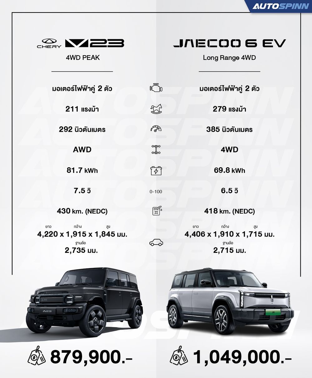 สรุป CHERY V23 Vs JAECOO 6 EV