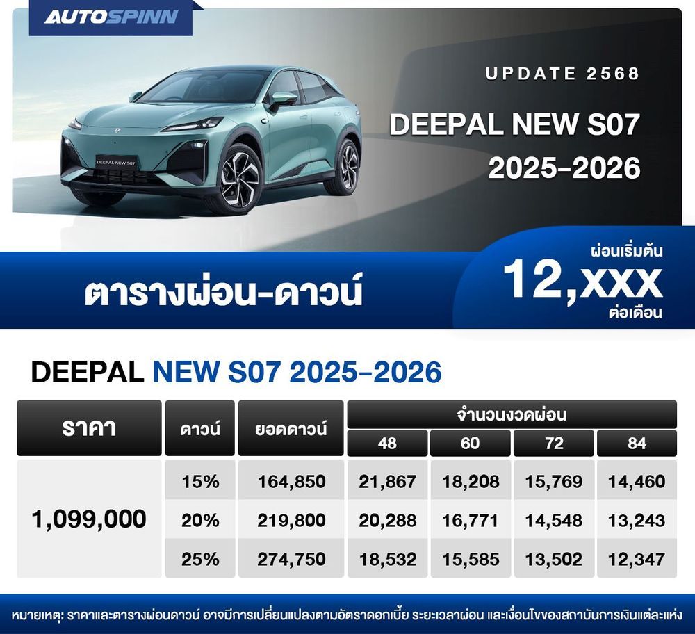 ตารางผ่อน DEEPAL NEW S07 2025-2026 เริ่มต้น 12,xxx บาท
