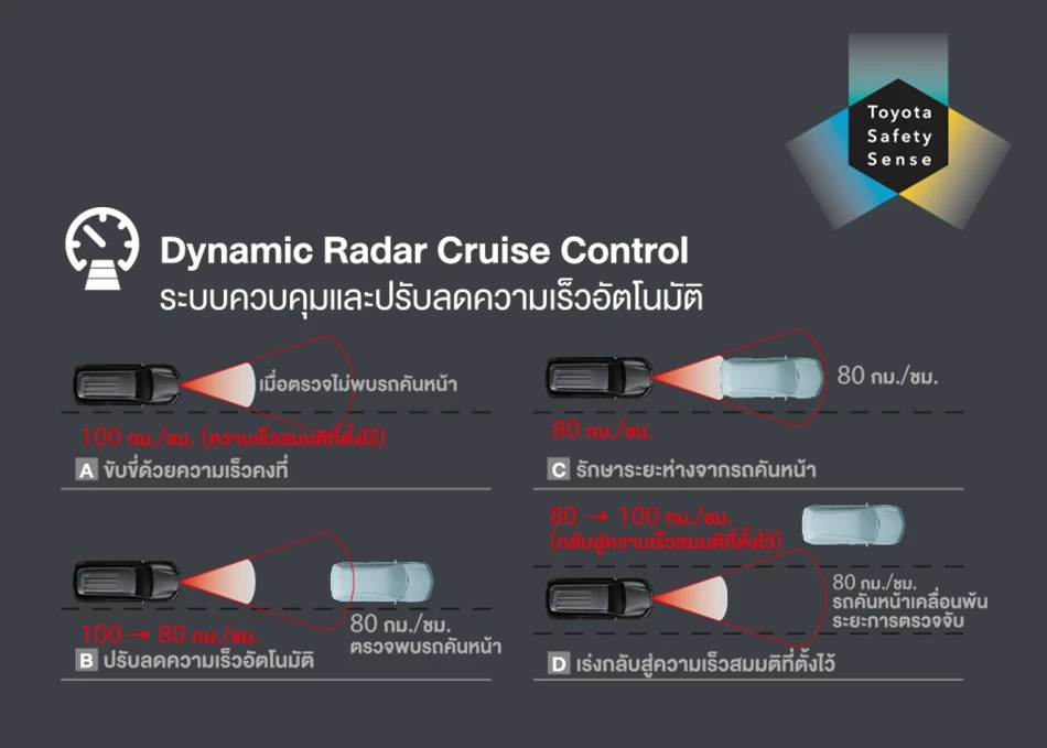 - ระบบควบคุมและปรับลดความเร็วอัตโนมัติ (Dynamic Radar Cruise Control)