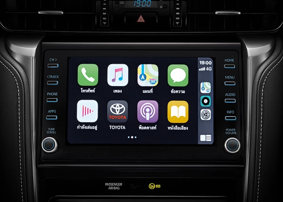 - เครื่องเสียงวิทยุ AM/FM พร้อมช่องเชื่อมต่อ USB เป็นหน้าจอสัมผัสขนาด 8 นิ้ว แบบ Capacitive รองรับระบบ Apple CarPlay และ Android Auto