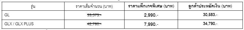 - รุ่น GLX PLUS ราคา 799,000 บาท