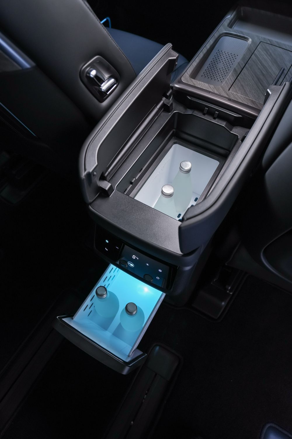 - ตู้เย็นภายในรถ (Car Refrigerator) ความจุ 12.5 ลิตร เปิดได้ทั้งด้านหน้า (Front Armrest) และด้านหลังแบบลิ้นชัก รองรับทั้งโหมดทำความเย็น 0–15°C และโหมดอุ่น 35–50°C