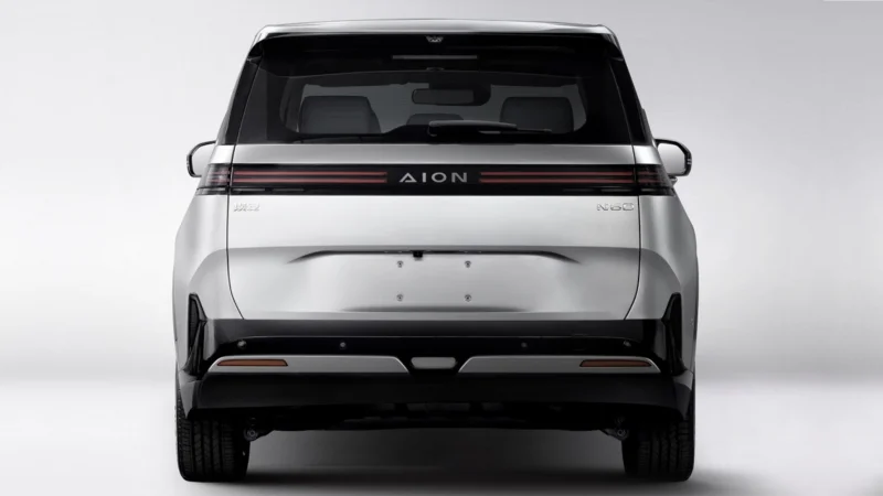 ด้านท้ายยังเน้นความเรียบ แต่ดูทันสมัยด้วยไฟท้าย LED แบบพาดยาว ที่ขั้นกล้างด้วยชื่อแบรนด์ “AION” ขณะที่ช่องชาร์จไฟ ถูกติดตั้งไว้บริเวณแก้มหน้าฝั่งขวา