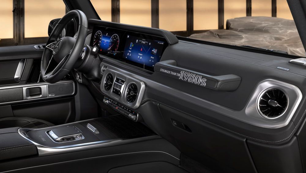 การออกแบบที่ย้อนกลับไปในอดีต Mercedes-Benz G-Class Edition Stronger Than The 1980s ถูกผลิตขึ้นเพื่อย้อนรำลึกถึงตำนานในอดีตของรถเอสยูวีโมเดล G Wagen โดยใช้รุ่นเครื่องยนต์ดีเซล G 450 d หรือเครื่องยนต์เบนซิน G 500 เป็นพื้นฐาน มีสามสีให้เลือก สำหรับภายนอก สีเขียว Manufaktur Agave Green Solid สีขาว Manufaktur Cream Solid และสีเบจ Manufaktur Colorado Beige Solid เพิ่มความคลาสสิกด้วยไฟเลี้ยวสีส้ม สีดำ Night Black Mango บริเวณกันชนหน้า กระจังหน้า โป่งซุ้มล้อ และกระจกข้างของรถเพื่อสะท้อนถึงความแกร่งของรถรุ่นแรก ใช้แผ่นป้องกันใต้ท้องรถสีดำ อุปกรณ์ตกแต่ง Professional Line Exterior บังโคลนหน้าและหลัง ตะแกรงป้องกันไฟหน้า ยางออล–เทอร์เรน นอกจากนี้รถยังมีโลโก้ Manufaktur มือจับเปิดประตูสีดำ พร้อมฉายโลโก้ G-Stronger Than Time จากกระจกข้างของรถลงที่พื้นเมื่อผู้ขับเข้าใกล้รถในเวลากลางคืน ด้วยการฉายโลโก้บนกระจกมองข้าง ต้อนรับผู้ขับขี่และผู้โดยสารเมื่อก้าวเข้าสู่รถ พร้อมตัวอักษร “G – STRONGER THAN TIME” เรืองแสงบนพื้น และสิ่งที่เปลี่ยนไปคือเทคโนโลยี ที่ดียิ่งขึ้นทั้งภายในรถการขับขี่ เครื่องยนต์