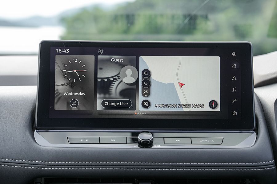 หน้าจอกลางของ Nissan X-Trail มีขนาด 12.3 นิ้ว งานออกแบบมาในแนวเรียบง่าย ดูสมัยใหม่ ฟังก์ชั่นการใช้งานครบถ้วนตามที่รถระดับนี้ควรมี ไม่ว่าจะเป็นระบบนำทางผ่านดาวเทียม Navigation System กล้องมองภาพรอบคัน ระบบเชื่อมต่อ Android Auto และ Apple CarPlay แบบไร้สาย ระบบความบันเทิงได้เครื่องเสียงจากยี่ห้อ BOSE พร้อม 9 ตำแหน่ง