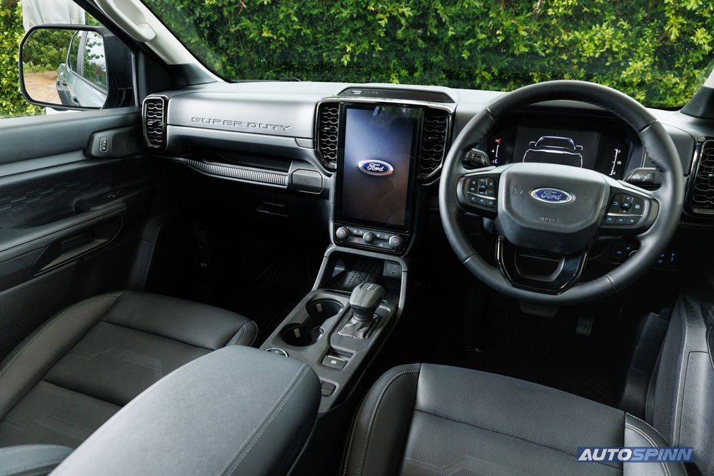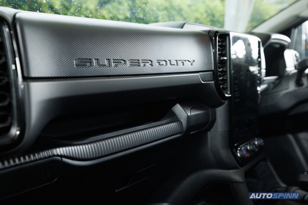 - ห้องโดยสารภายใน ได้รับการออกแบบให้มีความสะดวกสบายและล้ำสมัย พร้อมความทนทานและสามารถรองรับการใช้งานจริงได้ ภายในตกแต่งด้วยสัญลักษณ์ ‘SUPER DUTY’ ที่แผงคอนโซลหน้า