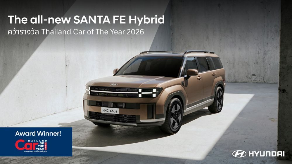 สำหรับ Hyundai all-new SANTA FE Hybrid ซึ่งได้รับรางวัล “BEST HYBRID MID-SIZE SUV UNDER 1,800 c.c.” คือ รถพลังงานไฮบริด 6 ที่นั่งที่โดดเด่นด้วยดีไซน์ Boxy สะดุดตา และอัตราประหยัดน้ำมันที่ทำได้สูงสุด 19.6 กิโลเมตรต่อลิตร ด้วยขุมพลัง 1.6 Turbo Parallel Hybrid ให้กำลังรวมสูงสุด 232 แรงม้า แรงบิด 367 นิวตันเมตร นุ่มนวล แต่พร้อมเร่งแซงได้ทันใจโดยไม่ต้องลากรอบสูง ตอบโจทย์ทั้งการขับใช้งานในเมืองวันทำงาน ไปจนถึงทริปครอบครัวในวันหยุด ห้องโดยสารจัดเต็มความสบายด้วยเบาะ Captain Seat พื้นที่เก็บสัมภาระท้ายรถกว้างขวาง รองรับทุกกิจกรรมของครอบครัว พร้อมระบบความปลอดภัย Hyundai SmartSense 11 ระบบ ที่ช่วยดูแลรอบคัน เพิ่มความมั่นใจในทุกเส้นทาง